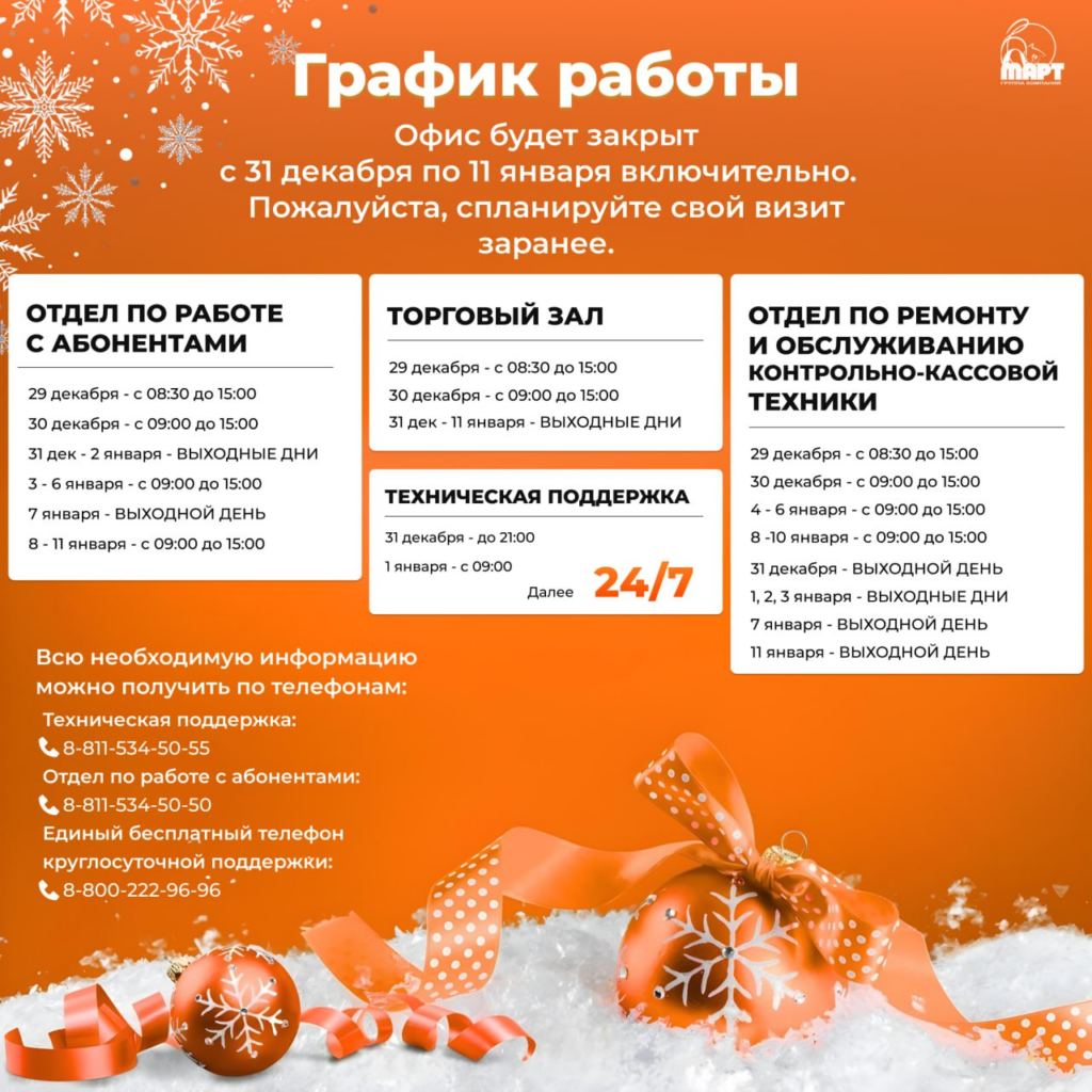 Обращаем ваше внимание на изменения в графике работы нашего офиса в праздничные дни.