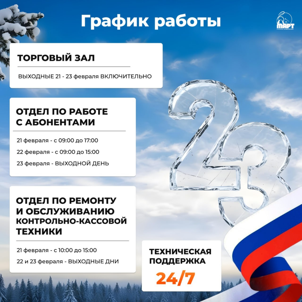 Уважаемые абоненты!Обращаем ваше внимание на изменения в графике работы офиса в феврале.